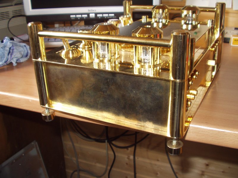 Das die bei E-Bay erworbene Vorstufe nichts mehr mit dem angebotenen Originalzustand zu tun hatte wurde uns bei der Abholung klar, da fehlte schlicht die Netzteilbuchse, ein abgekniffenes Netzkabel ragte aus dem Loch und war dem Sicherungshalter verlötet, da wir das Goldkind nicht in den Händen solch grausamer Frickler lassen wollten haben wir sie nach neuen Preisverhandlungen doch übernommen. Zuhause näher getestet war klar das da eigentlich gar nichts mehr stimmte, stark unterschiedlicher Pegel bei Linear/Loudness Umschaltung, unterschiedlicher Klang im rechten und linken Kanal und ein fröhliches Knistern im linken Kanal das sich nachdem dem man Goldkind einen freundlichen Klaps gab für einige Zeit beruhigte.