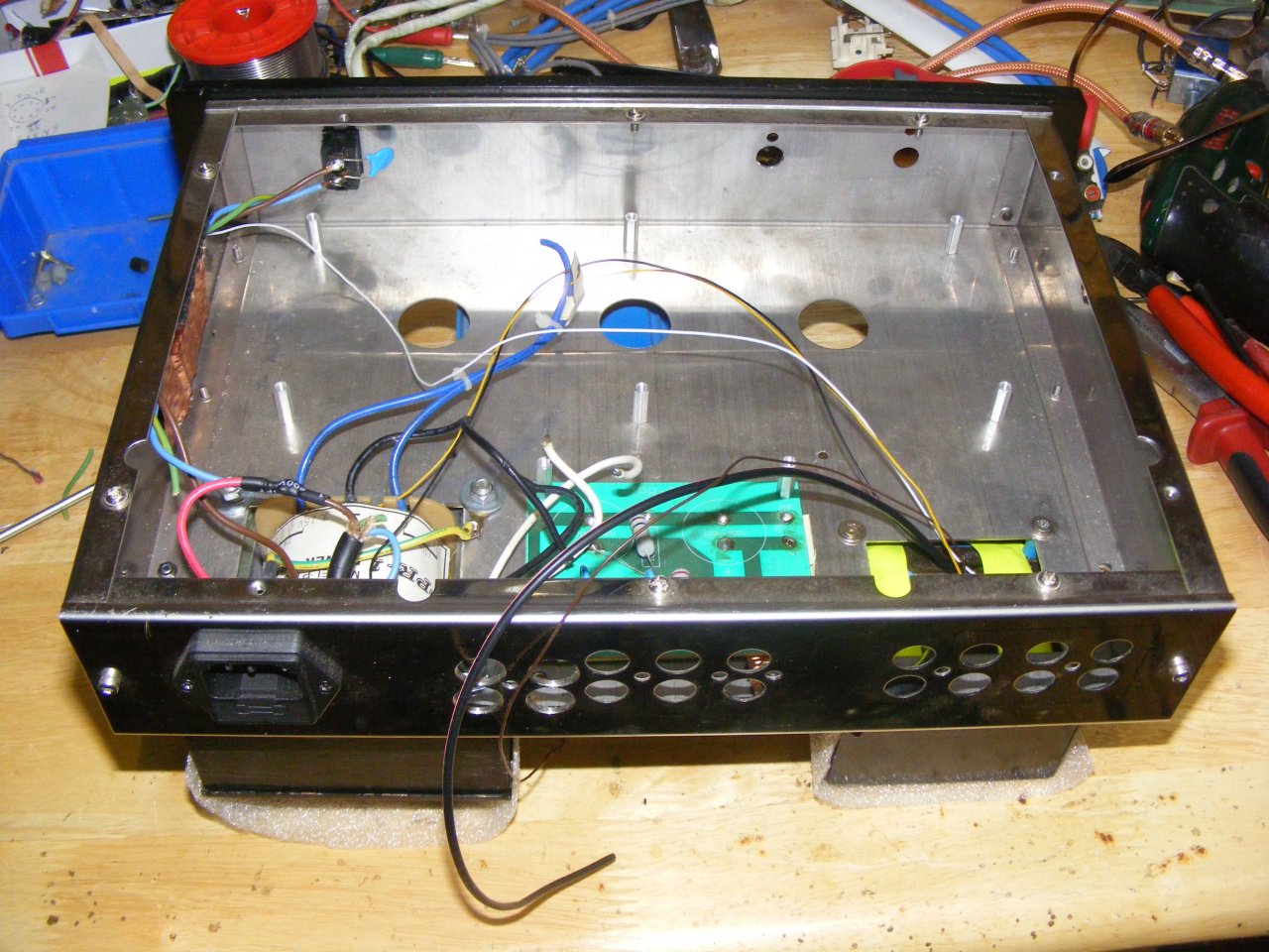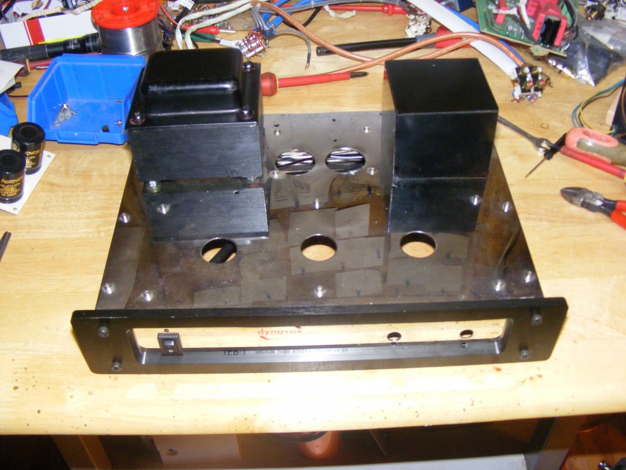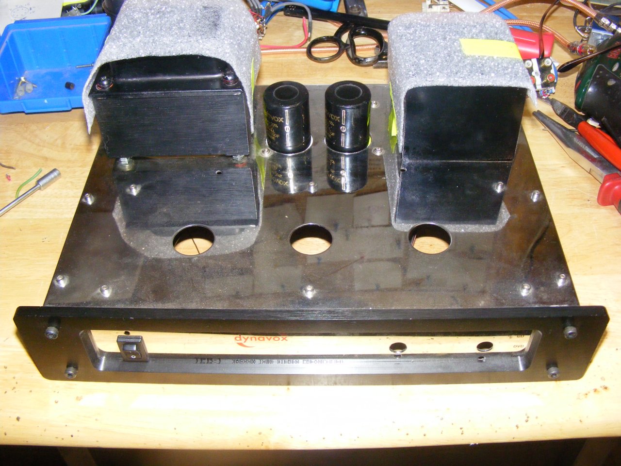 Die Drossel entfällt und wird durch eine FET Reglung ersetzt, an ihrer Stelle ist jetzt der Trafo montiert der den Bassbooster versorgt, Netztrafo hat eine Kappe bekommen.